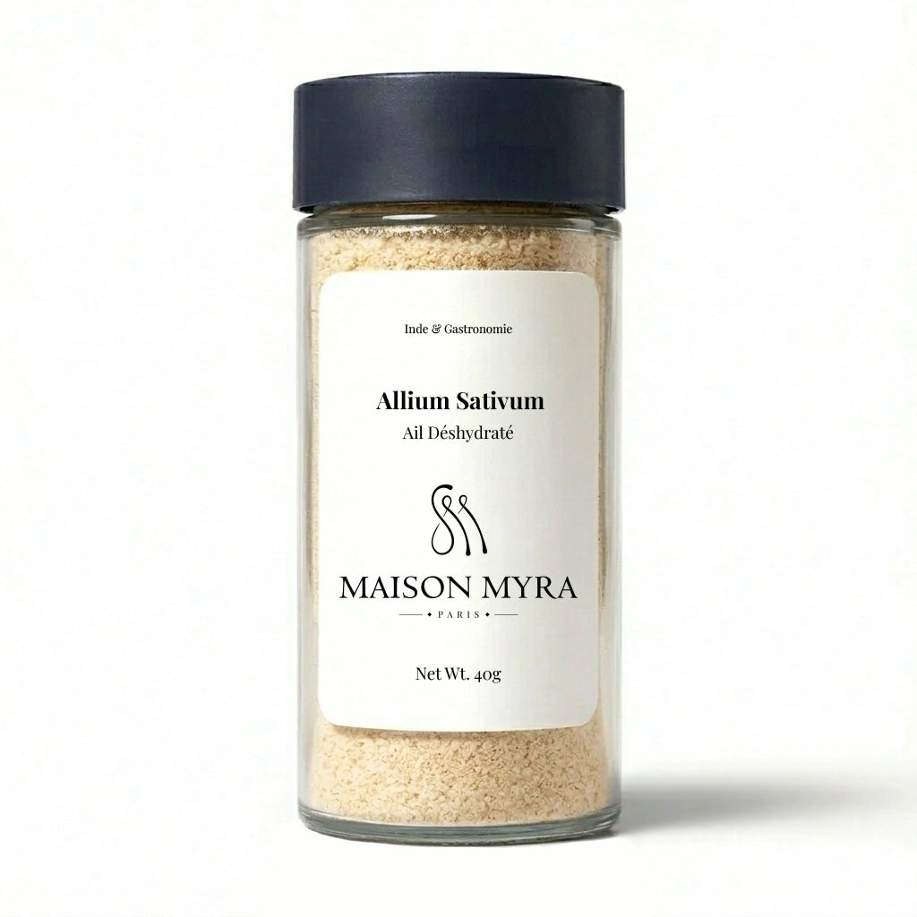 L’ail déshydraté en poudre Maison Myra offre pureté, simplicité et intensité naturelle — soigneusement préparé pour les cuisines modernes.