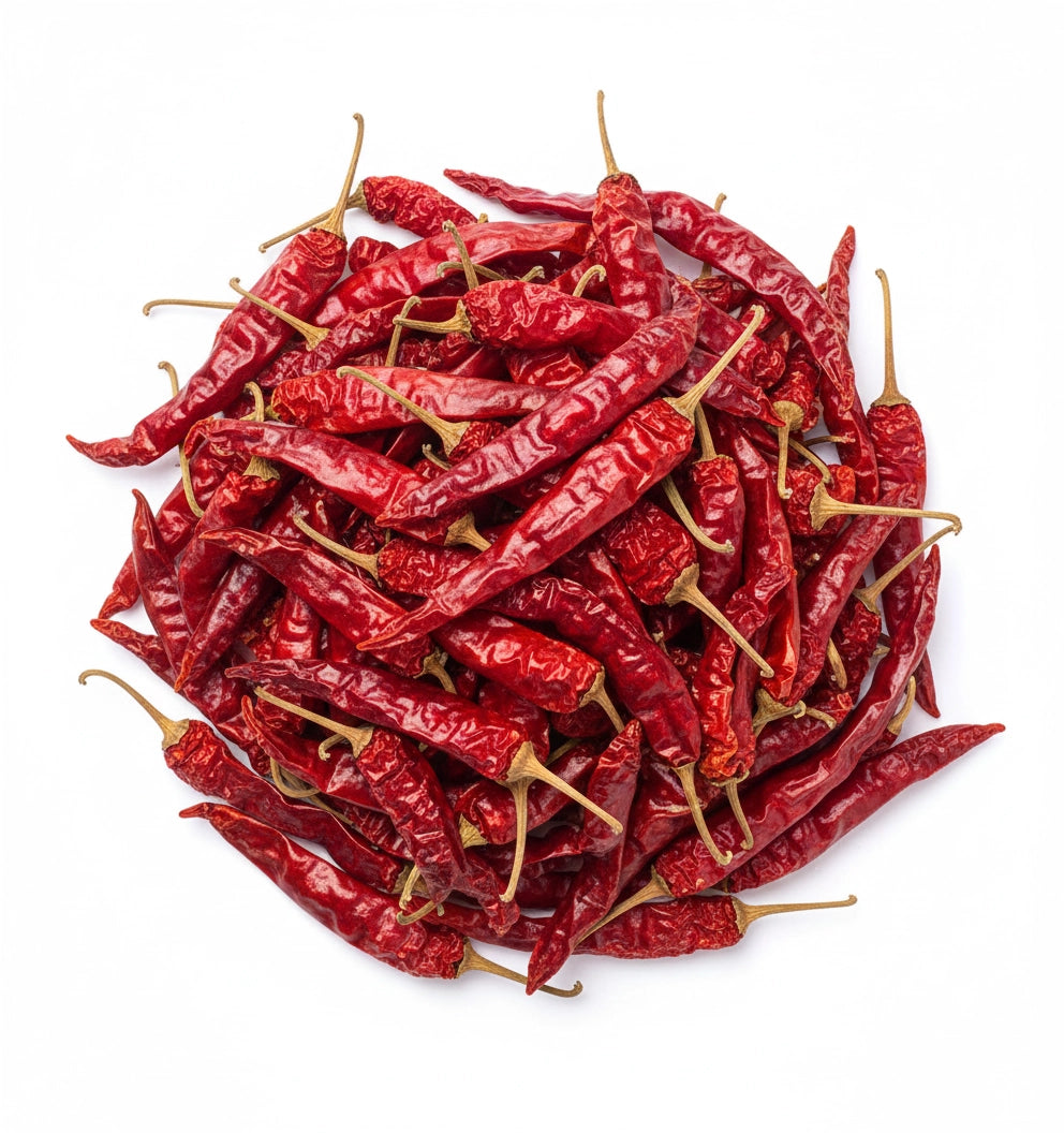 Famoso per il suo colore rosso brillante e la piccantezza delicata, il peperoncino Byadagi dona un aroma caldo e un gusto lieve che arricchiscono curry, chutney, marinate, salse e oli aromatizzati. Intero rilascia gradualmente il suo colore; in polvere, offre una tonalità vivace e una piccantezza equilibrata.