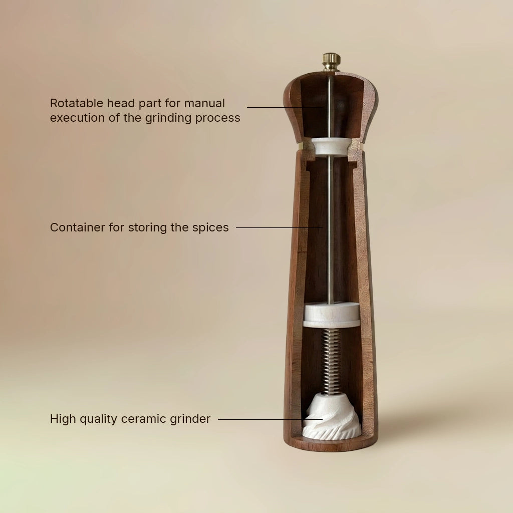 Un moulin en bois simple, conçu pour un usage quotidien